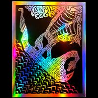 All aboard! The seas around you may seem calm, but there's a squall on the horizon and storm clouds are gathering above. To brave this psychedelic seafaring adventure you'll need the shiniest boat possible. One made with drawn components that are adjacent to one another, but not overlapping! (This part is important!!!) Luckily, such a majestic craft is in your grasp. Grab this foil print today and set sail for a beautiful new planet in your mind's eye!